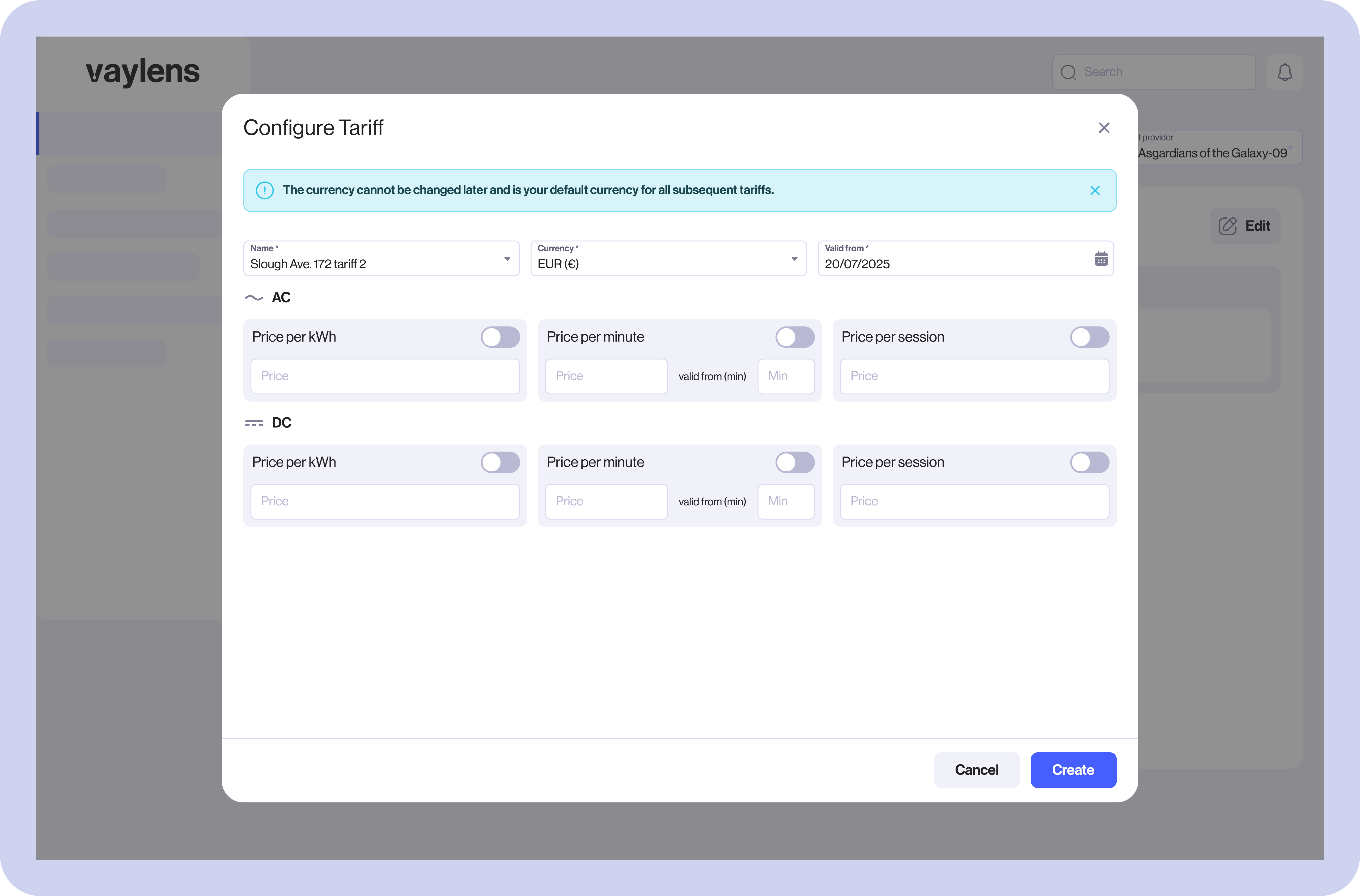 vaylens makes it easy to share your workplace charging stations with specific groups of drivers on customised tariffs. Tariffs are easily manageable in the vaylens platform, and we manage billing, so there's one less thing to worry about.