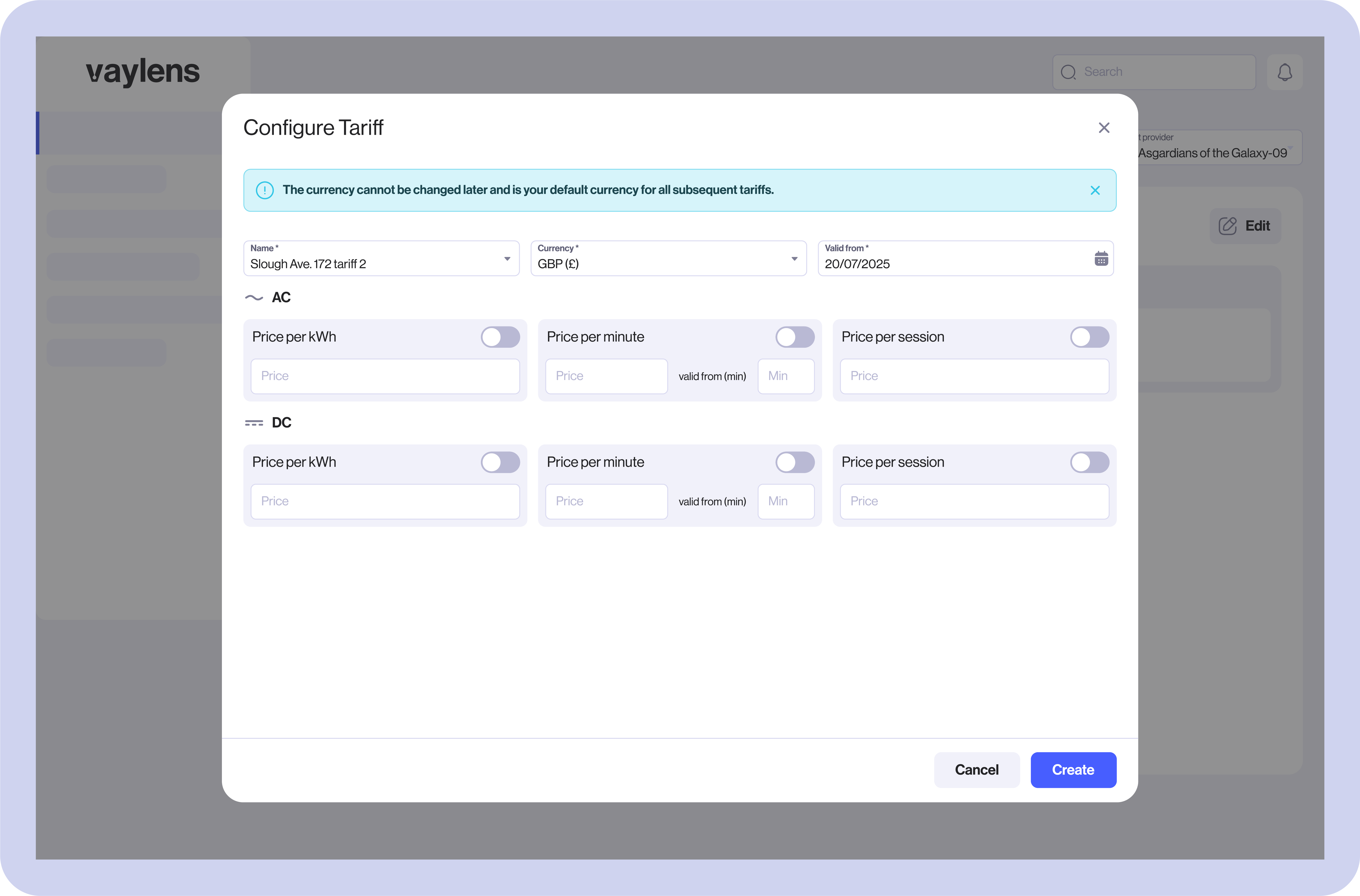 vaylens makes it easy to share your workplace charging stations with specific groups of drivers on customised tariffs. Tariffs are easily manageable in the vaylens platform, and we manage billing, so there's one less thing to worry about.